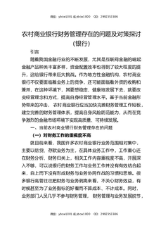 农村商业银行财务管理存在的问题及对策探讨(调研报告参考).docx