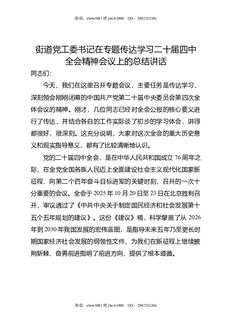 街道党工委书记在专题传达学习二十届四中全会精神会议上的总结讲话.doc