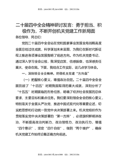 二十届四中全会精神研讨发言:勇于担当、积极作为,不断开创机关党建工作新局面.doc