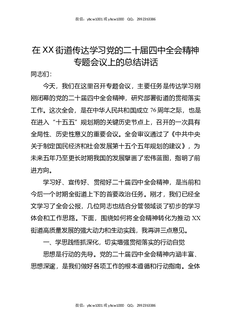 在XX街道传达学习党的二十届四中全会精神专题会议上的总结讲话.docx