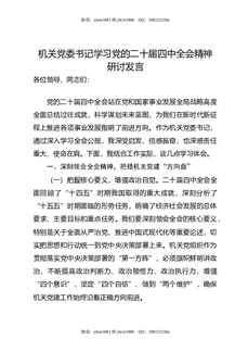 机关党委书记学习党的二十届四中全会精神研讨发言.doc