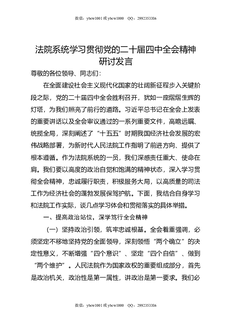 法院系统学习贯彻党的二十届四中全会精神研讨发言.doc