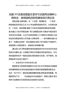 民建XX区基层委副主委学习全国两会精神心得体会:奋楫扬帆启新程赓续前行再出发.docx