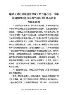 学习《习近平谈治国理政》第五卷心得:深学笃用党的创新理论奋力谱写XX地高质量发展新篇章.docx