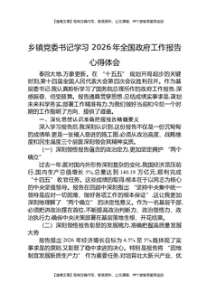 乡镇党委书记学习,2026年全国政府工作报告心得体会.docx