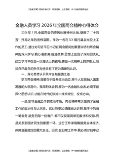 金融人员学习2026年全国两会精神心得体会.docx