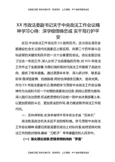 XX市政法委副书记关于中央政法工作会议精神学习心得:深学细悟铸忠诚,实干笃行护平安.docx