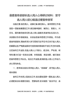 县委宣传部部长选人用人心得研讨材料坚守选人用人初心锻造过硬宣传铁军.docx