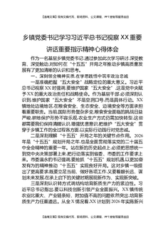 乡镇党委书记学习习近平总书记视察XX重要讲话重要指示精神心得体会.docx