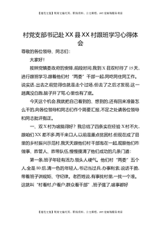 村党支部书记赴XX县XX村跟班学习心得体会.docx