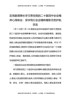 区残联理事长学习贯彻党的二十届四中全会精神心得体会:深学笃行全会精神履职尽责护航民生.docx