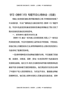 学习《榜样10》专题节目心得体会(卫生健康).docx