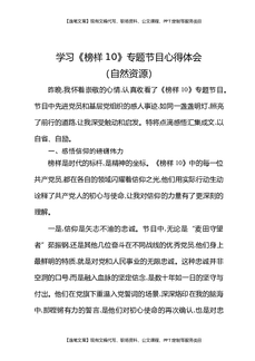 学习《榜样10》专题节目心得体会(自然资源).docx