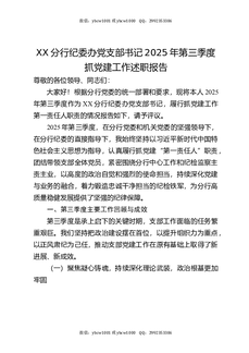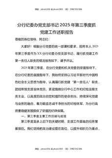 分行纪委办党支部书记2025年第三季度抓党建工作述职报告.docx
