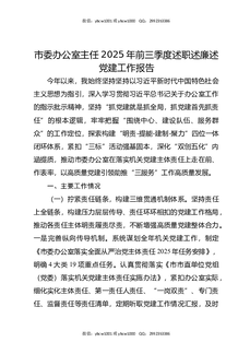 市委办公室主任2025年前三季度述职述廉述党建工作报告.docx