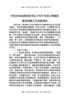市生态环境局党组书记2025年前三季度抓基层党建工作述职报告.docx