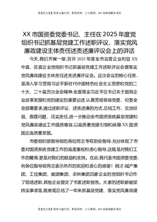 XX市国资委党委书记、主任在2025年度党组织书记抓基层党建工作述职评议、落实党风廉政建设主体责任述责述廉评议会上的讲话.docx
