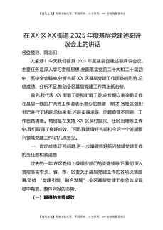 在XX区XX街道2025年度基层党建述职评议会上的讲话.docx