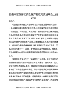 县委书记在落实安全生产党政同责述职会上的讲话.docx