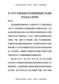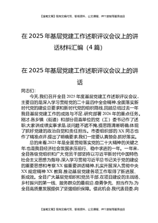 在2025年基层党建工作述职评议会议上的讲话材料汇编(4篇).docx