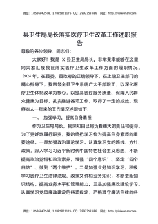 县卫生局局长落实医疗卫生改革工作述职报告.docx