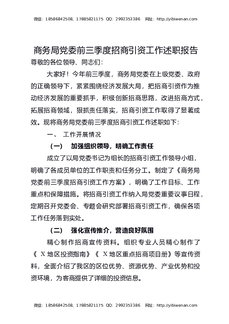 商务局党委前三季度招商引资工作述职报告.docx