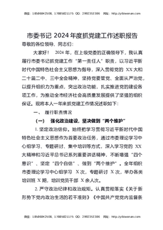 市委书记2024年度抓党建工作述职报告.docx
