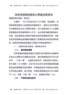 自然资源局党委前三季度述职报告.docx