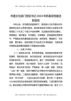 市直文化部门党组书记2024年抓基层党建述职报告.docx