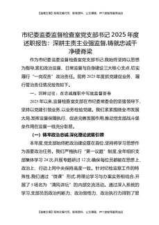 市纪委监委监督检查室党支部书记2025年度述职报告:深耕主责主业强监督,铸就忠诚干净硬脊梁.docx