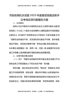 市财政局机关党委2025年度基层党建述职评议考核反馈问题整改方案.docx