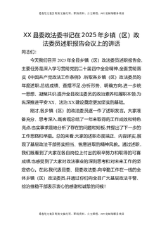 XX县委政法委书记在2025年乡镇(区)政法委员述职报告会议上的讲话.docx