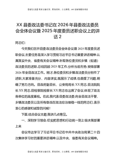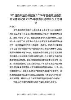 XX县委政法委书记在2026年县委政法委员会全体会议暨2025年度委员述职会议上的讲话2.docx