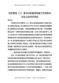 在区委党(工)委书记抓基层党建工作述职评议会上的点评讲话.docx