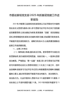 市委巡察组党支部2025年抓基层党建工作述职报告.docx