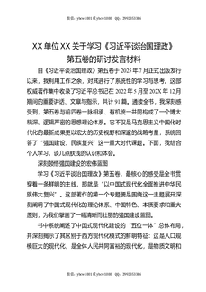 XX单位XX关于学习《谈治国理政》第五卷的研讨发言材料.docx