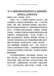 在XX县委巡察组巡察县政府办公室党组情况反馈会议上的表态发言.docx