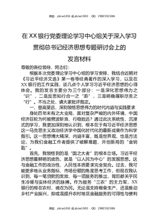 在XX银行党委理论学习中心组关于深入学习贯彻总书记经济思想专题研讨会上的发言材料.docx