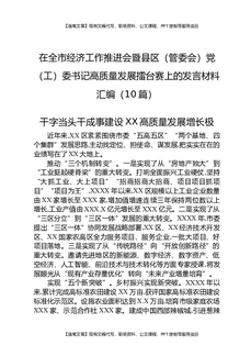 在全市经济工作推进会暨县区(管委会)党(工)委书记高质量发展擂台赛上的发言材料汇编(10篇).docx