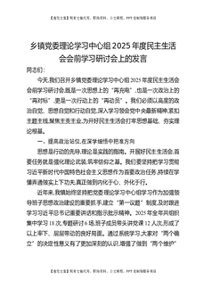 乡镇党委理论学习中心组2025年度民主生活会会前学习研讨会上的发言.docx