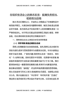 在组织生活会上的表态发言:挺膺负责担当,砥砺政治品格.docx