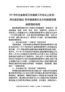 XX市在全省基层卫生健康工作会议上发言:深化医防融合,筑牢健康基石全力构建基层慢病管理新格局.docx