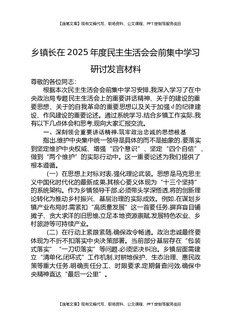 乡镇长在2025年度民主生活会会前集中学习研讨发言材料.docx