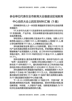 参会单位代表在全市教育大会暨建设区域教育中心动员大会上的发言材料汇编(5篇).docx