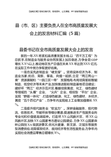 县(市、区)主要负责人在全市高质量发展大会上的发言材料汇编(5篇).docx