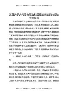 某县关于大气污染防治和烟花禁燃禁放的经验交流发言.docx