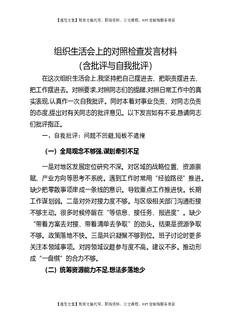 组织生活会上的对照检查发言材料(含批评与自我批评).docx