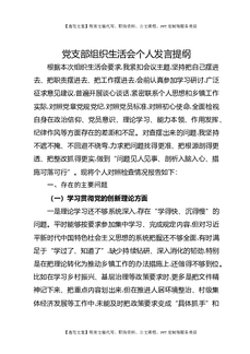 党支部组织生活会个人发言提纲.doc