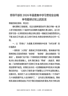 领导干部在2026年县委集中学习贯彻全会精神专题研讨班上的发言.docx
