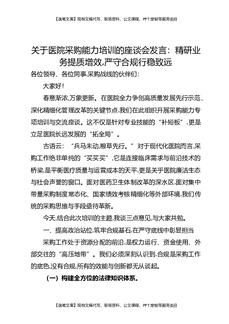 关于医院采购能力培训的座谈会发言:精研业务提质增效,严守合规行稳致远.docx